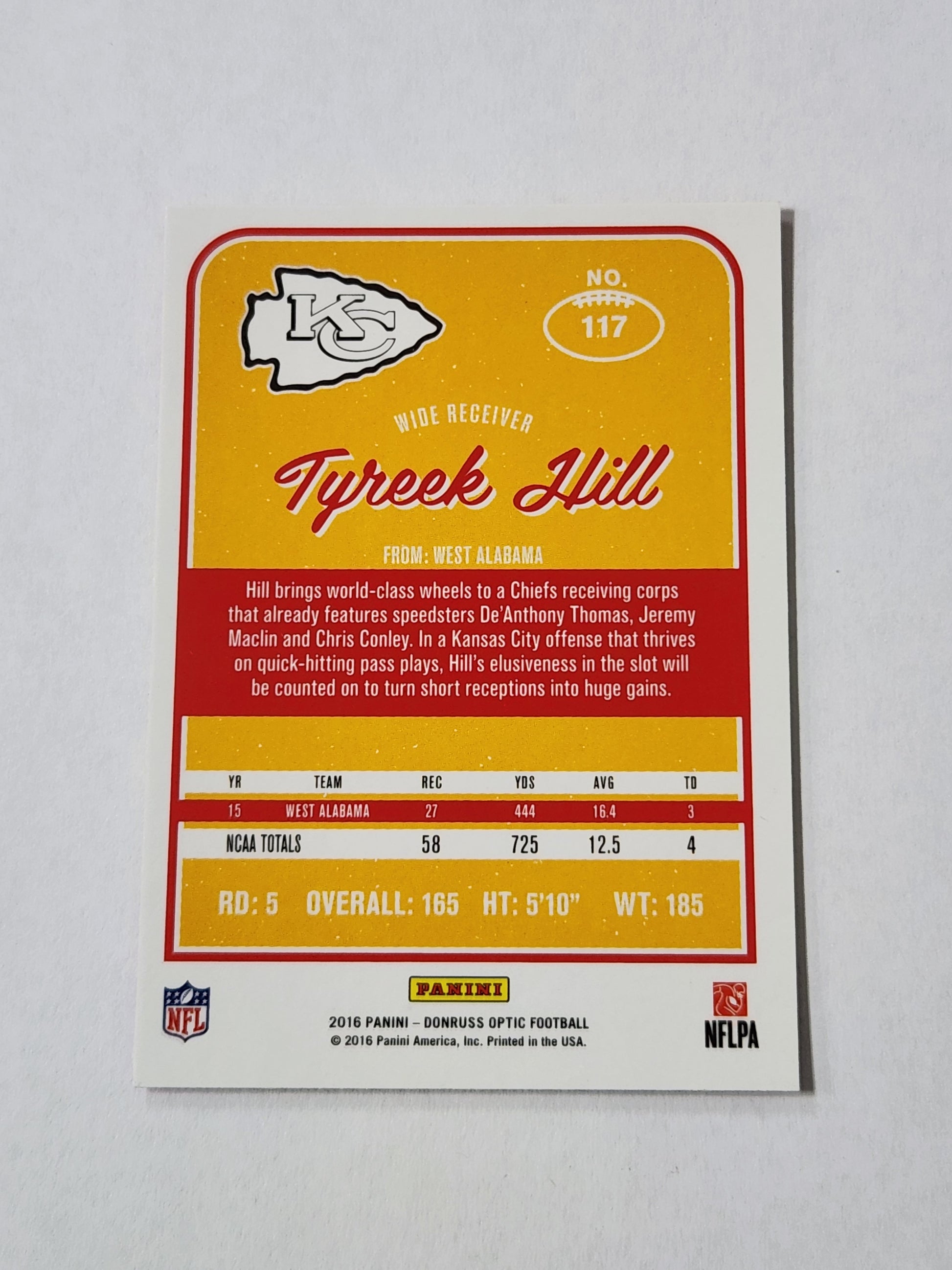 2016 Optic Tyreek Hill Rookie Pink Holo No. 117