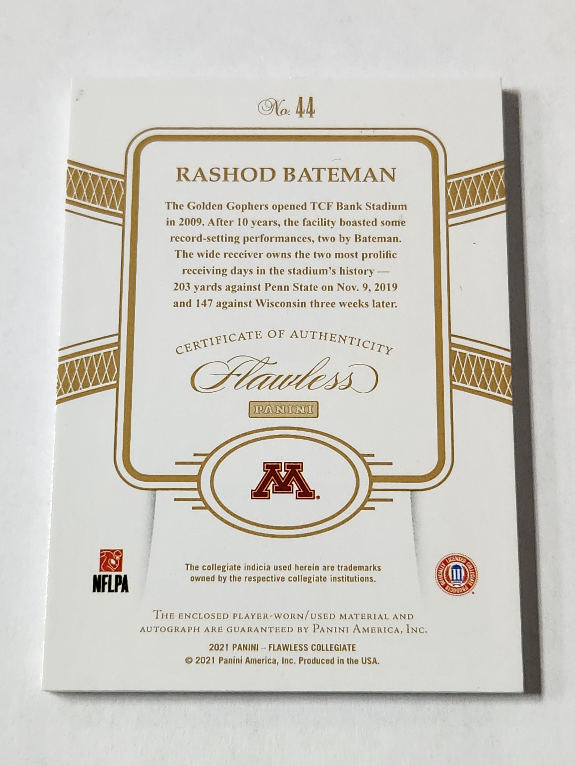2021 Flawless Draft Picks Rashod Bateman Rookie Patch On Card Auto One of One 1/1
