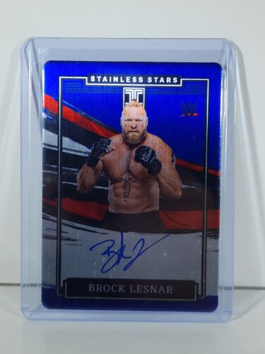 2022 Panini Impeccable WWE Stainless Stars Blue Brock Lesnar AUTO /75