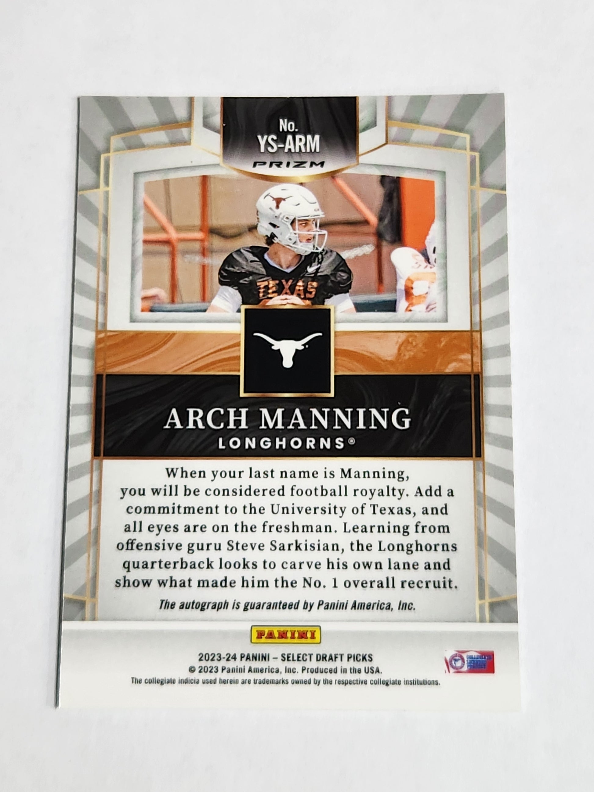 2023 Panini Select Draft Picks Youth Explosion Arch Manning Auto Rated Prospect YS-ARM