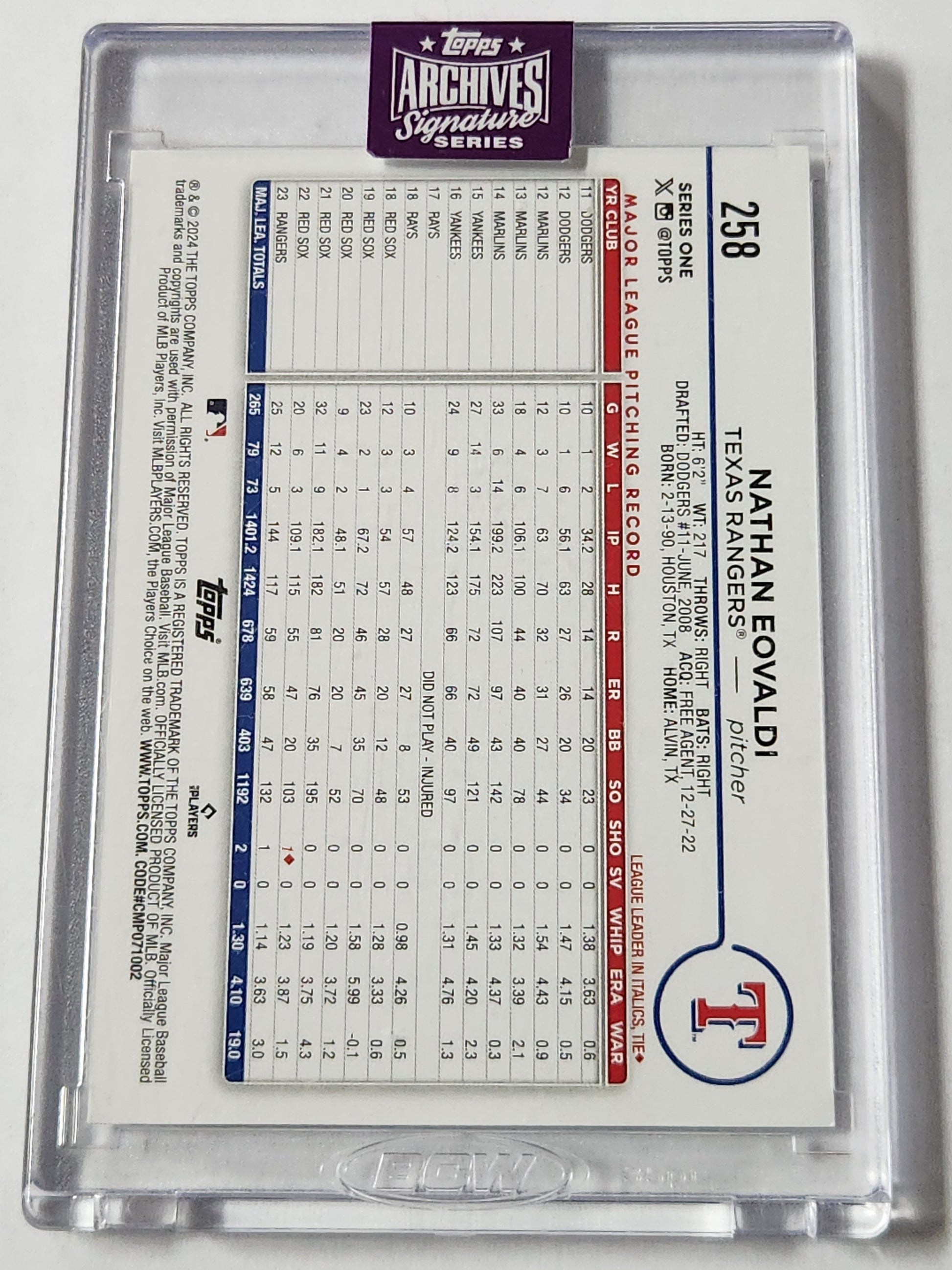 2024/25 Topps Archives Nathan Eovaldi On Card Auto /10