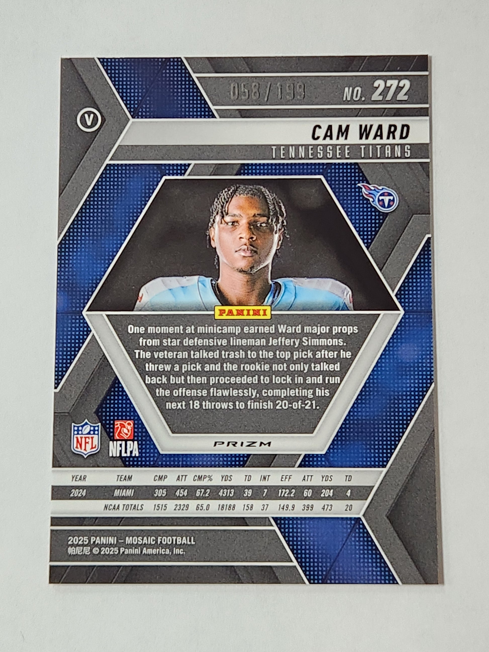 2025 Mosaic Cam Ward Image Variation Orange # /199 RC Rookie 272